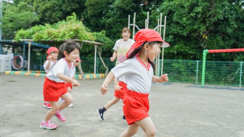 園庭では、汗をかきながら元気に遊ぶ子どもたちの姿が見られます。
