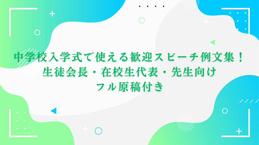 春の訪れとともに迎える入学式。新しい仲間との出会いに胸を弾ませる日ですが、「スピーチ、どう話したらいいんだろう?」と悩む人も多いはずです。 この記事では、中学校の入学式で使える歓迎スピーチの例文を立場別に紹介します。 生徒会長として全校を... -